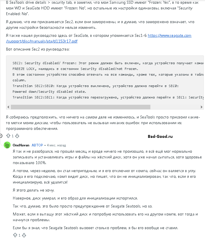 (добавлено 12.04.2026) Утилиты тоже могут принудительно выставлять Frozen, не спрашивая пользователя (опять Seagate отличился).